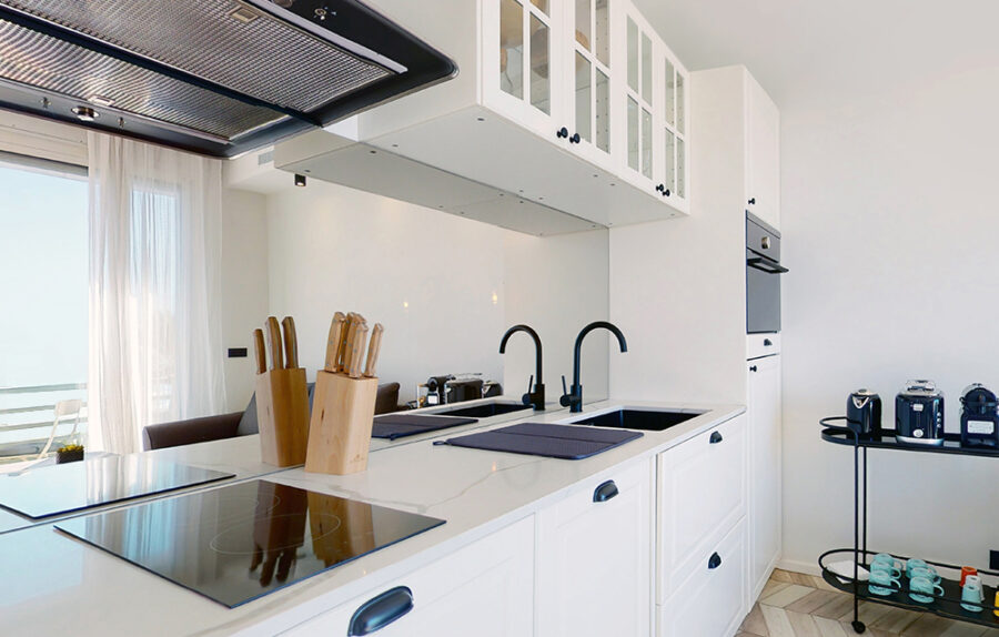 With its stunning view over the Mediterranean, this fully furnished 28 m2 suite is our contemporary twist on a retro-chic design. The Sandy sleeps 2 and boasts a pull-out sofa, a fully equipped kitchen, a Smart TV, and ultra high speed internet. Large windows keep the space luminous while the sea-view terrace provides the perfect spot for your morning coffee or sunset aperitif.